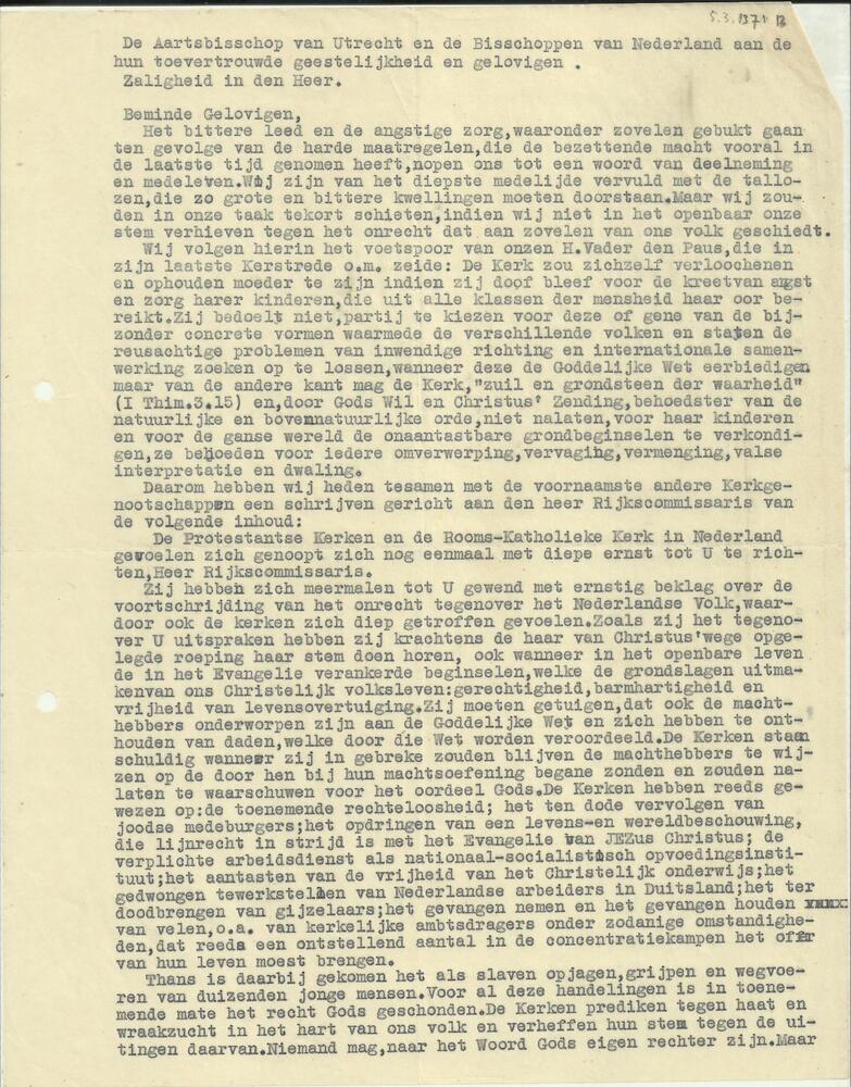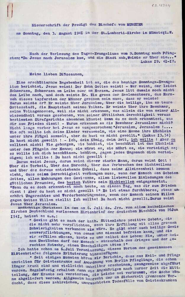 Vel, doorslag, "Niederschrift der Predigt des Bischo...