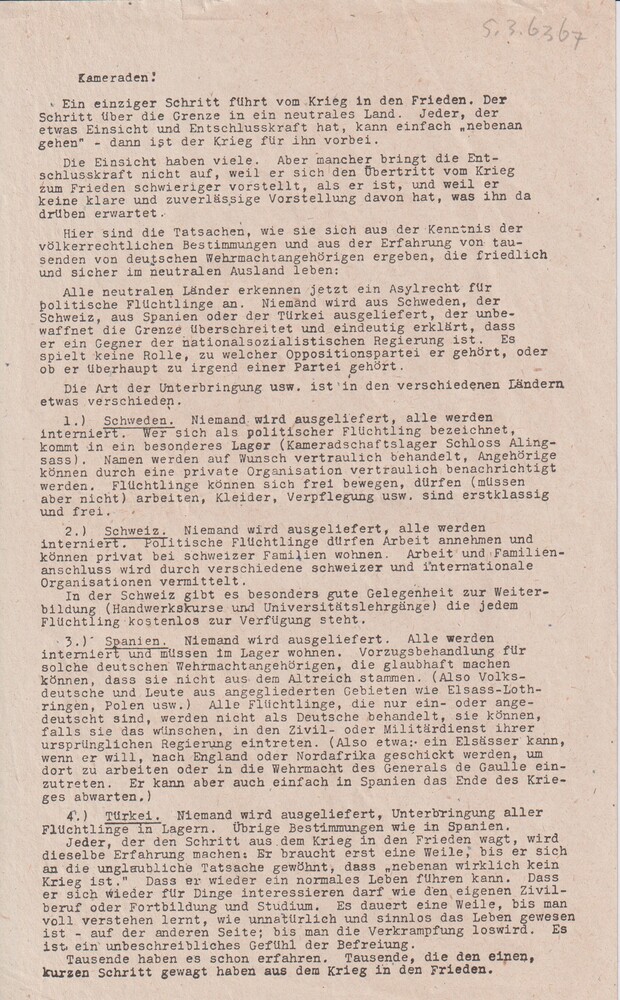 Pamflet: "Kameraden! Ein einziger Schritt führt vom ...
