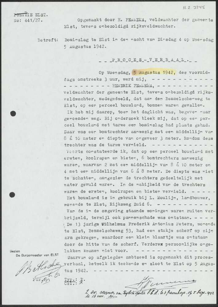Proces-verbaal Politie Elst 5 augustus 1942.