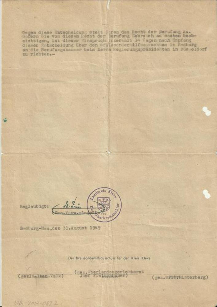 Besluit ( Beschluss) des Kreissonderhilfsausschusses...