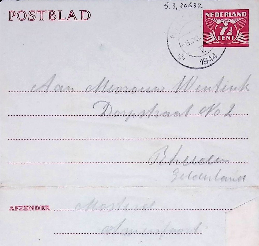 postblad aan Mevrouw Wentink, Dorpstraat no 2, Rheden