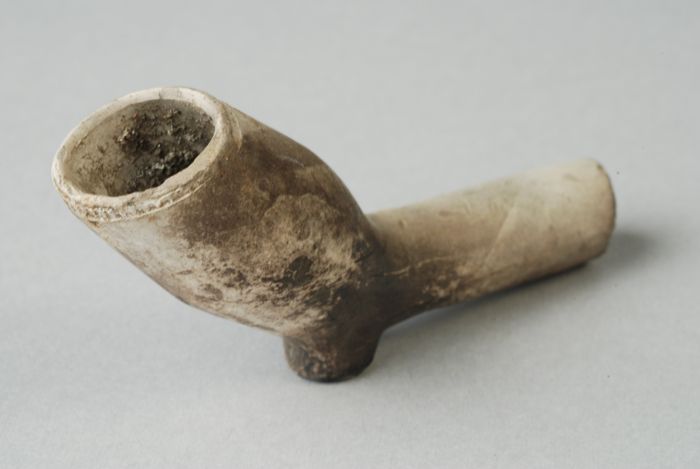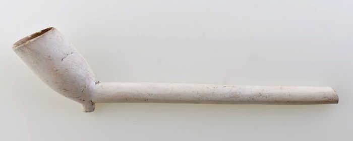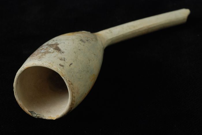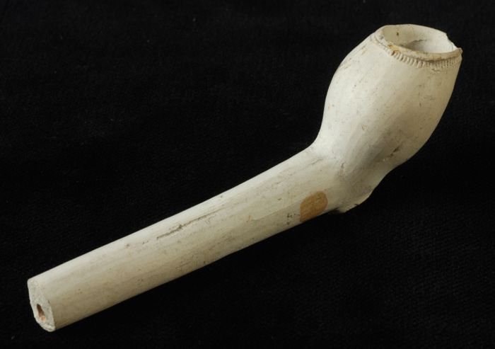 Kleipijp met trechtervormige kop en hiel, ongemerkt