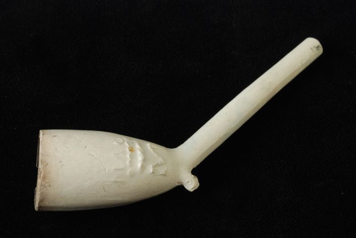Kleipijp met florale versiering in reliëf op steel