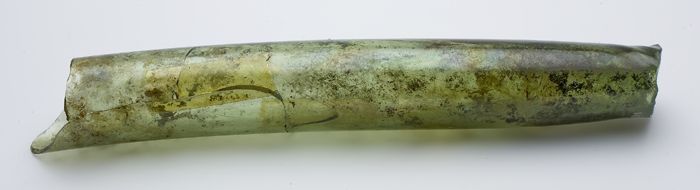 Hol, iets gebogen buisfragment, groen, mogelijk frag...