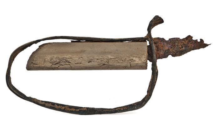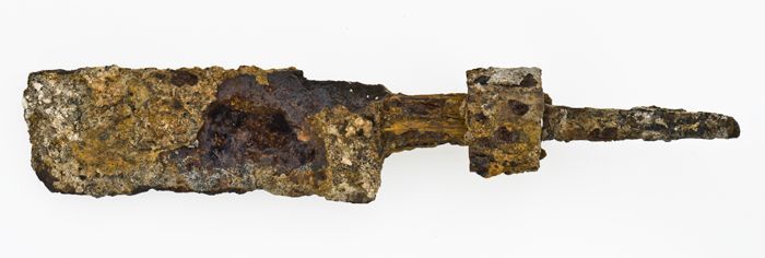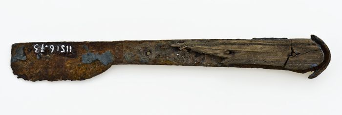 Handvat waarin heft met gedeelte van lemmet, speelgo...