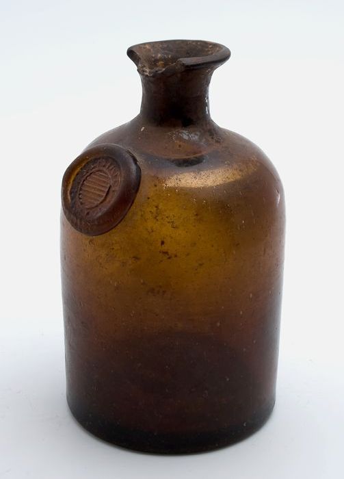 Bruine fles met zegel, apothekersfles