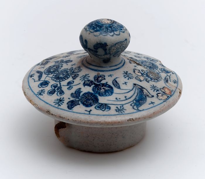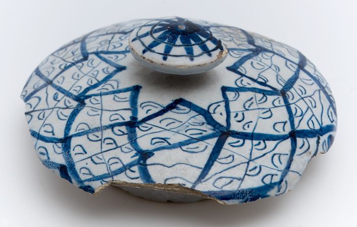 Aardewerk deksel van apotherspot, faience, decor in ...