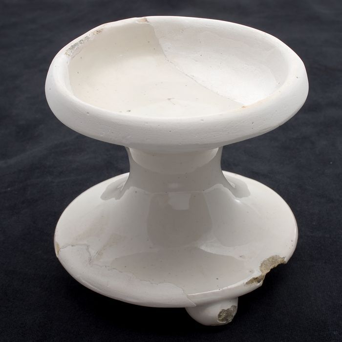 Aardewerk zoutschaal, zoutvat op voet, wit geglazuurd