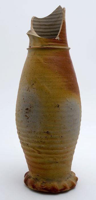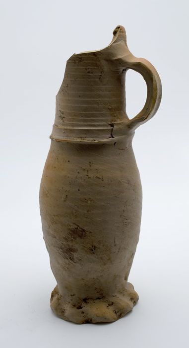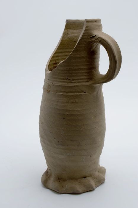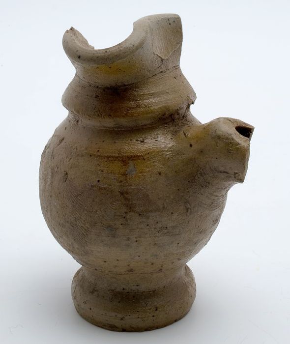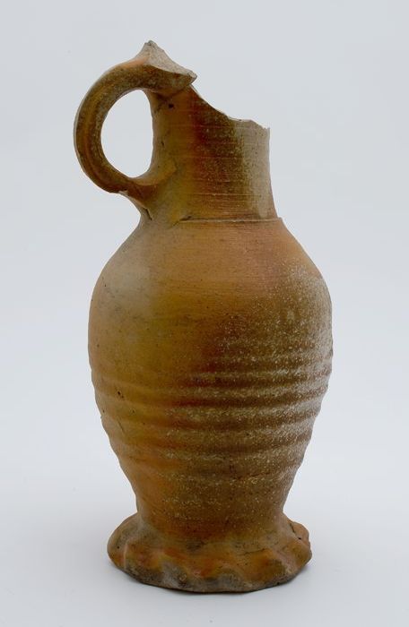 Grijze steengoed kan, jacobakan, op knijpvoet