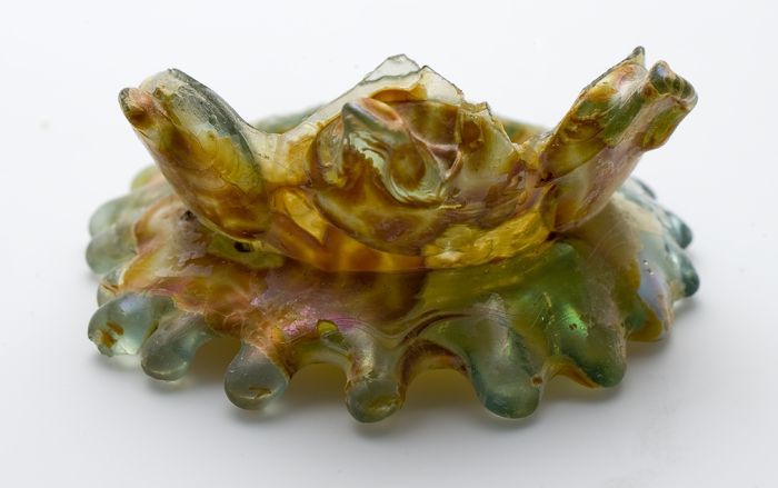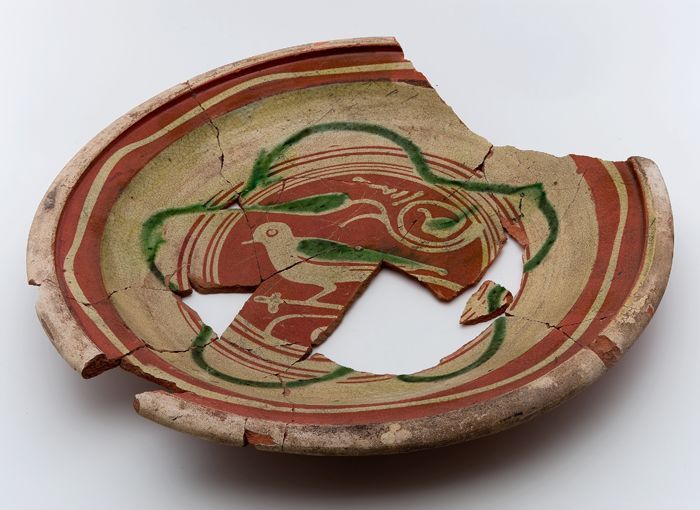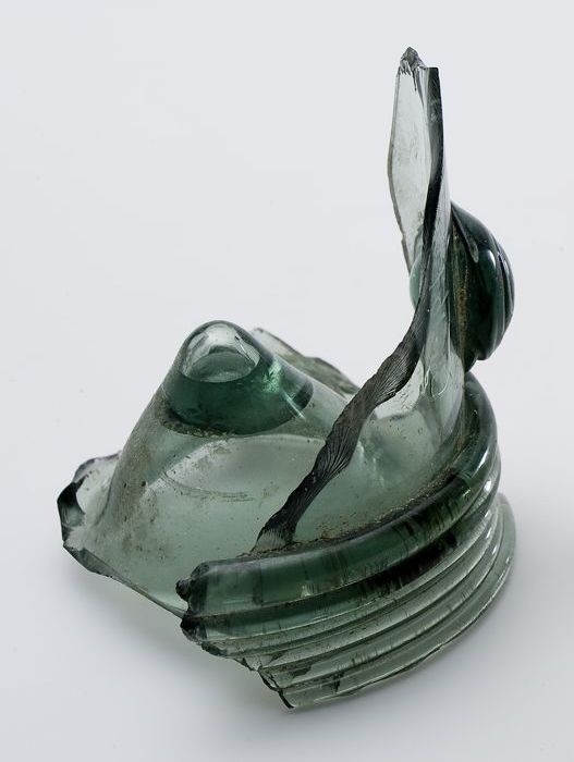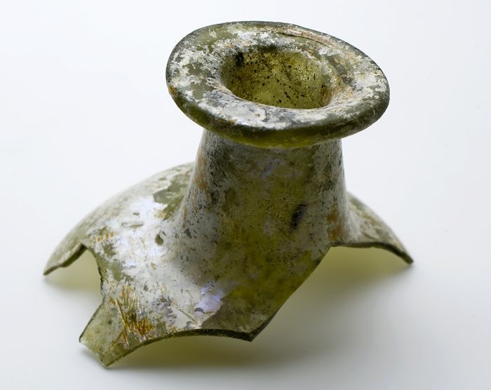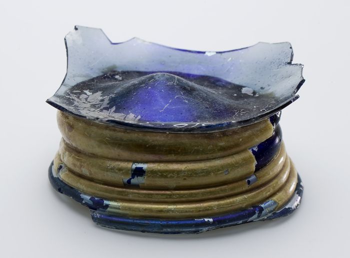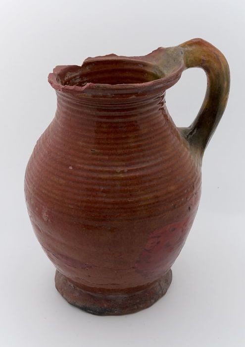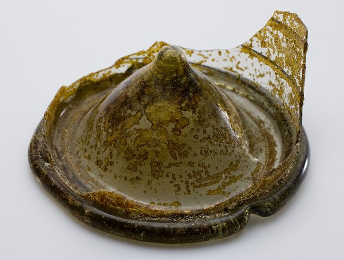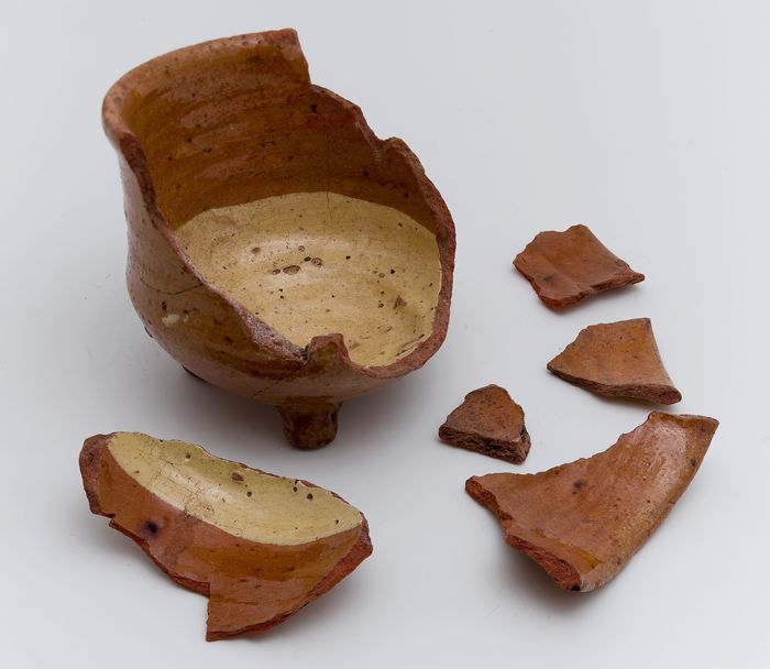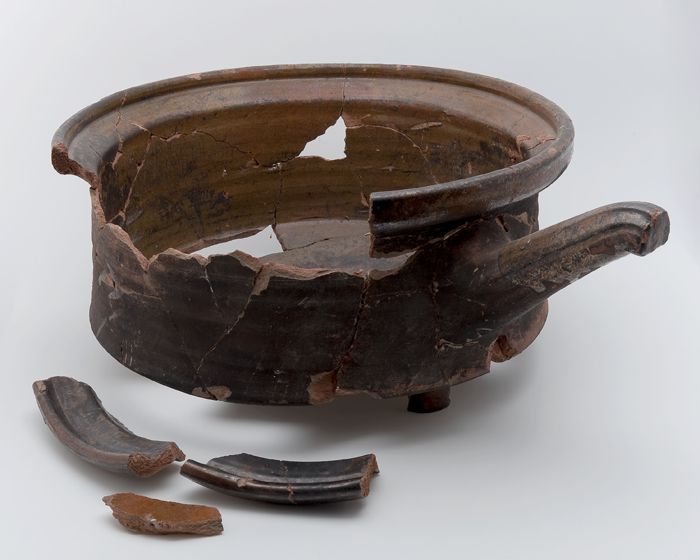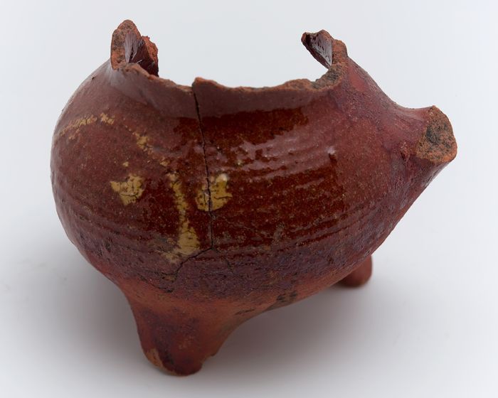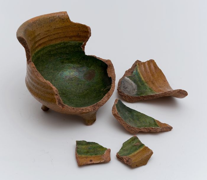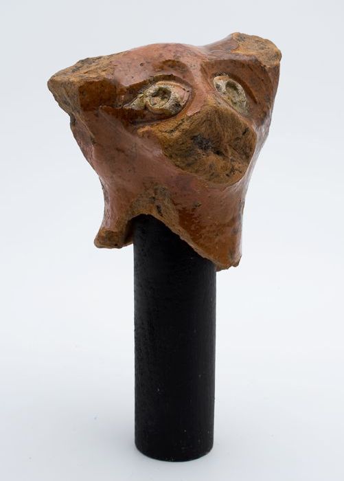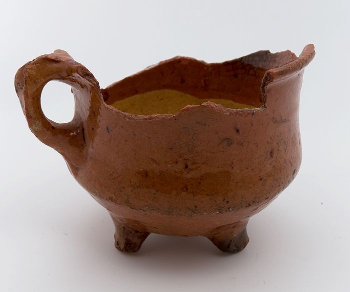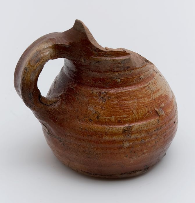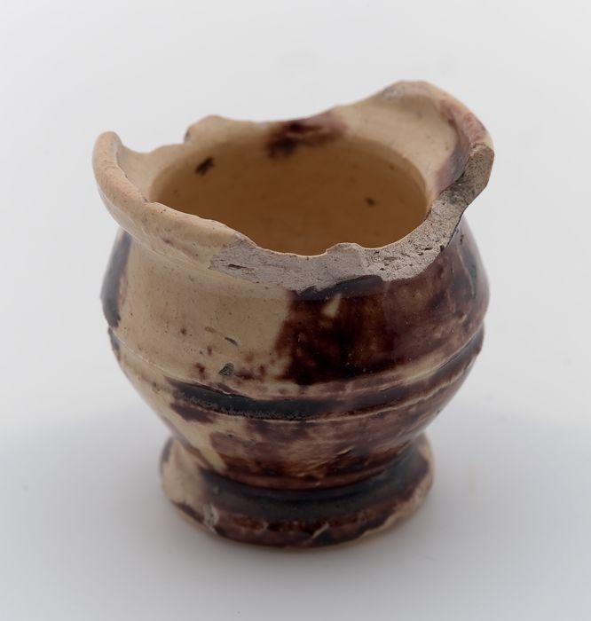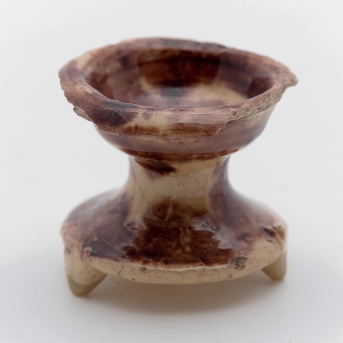 Fragment aardewerk speelgoed olielamp, bruin en groe...