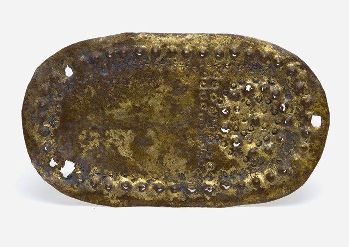 Koperen rasp, ovale plaat met gatenpatroon