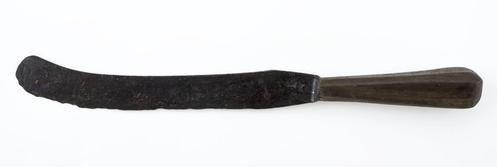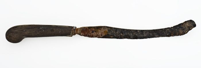 Mes met enigszins gebogen lemmet en houten heft