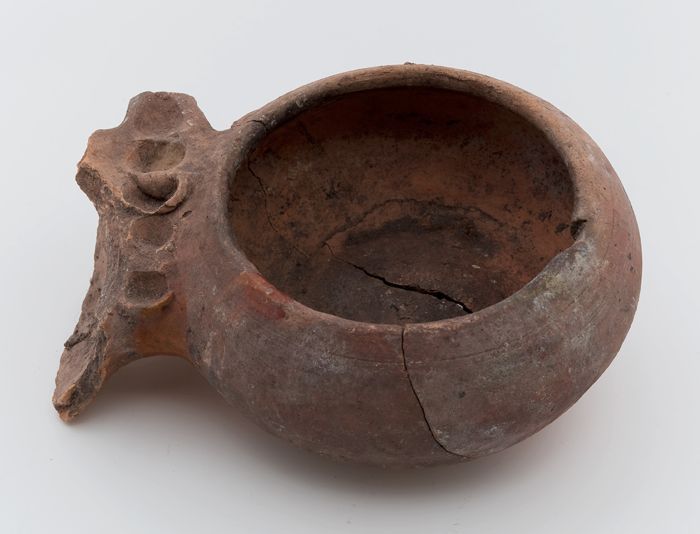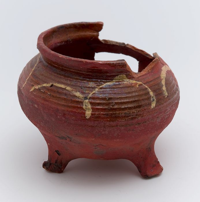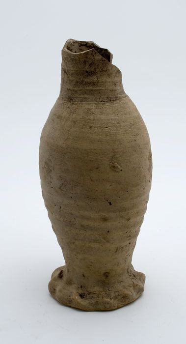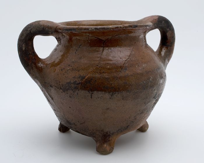 Aardewerk kookpot, grape-model met worstoren, op dri...
