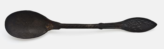 Theelepel met druppelvormige bak en getordeerde stee...
