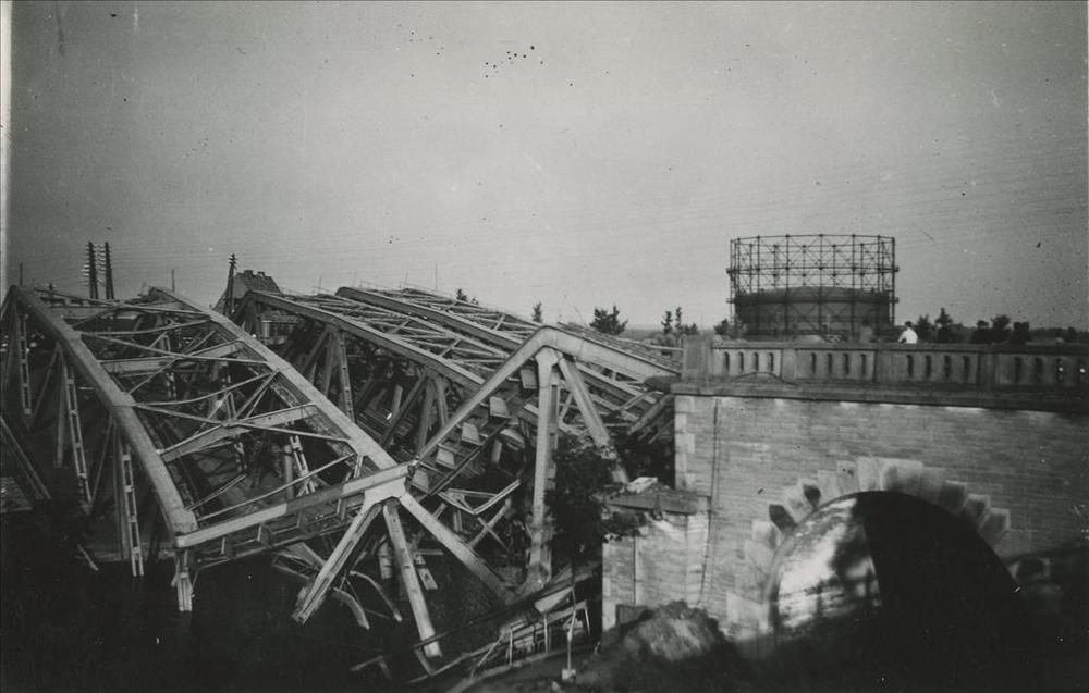 Opgeblazen spoor- en verkeersbruggen over het Maas-W...