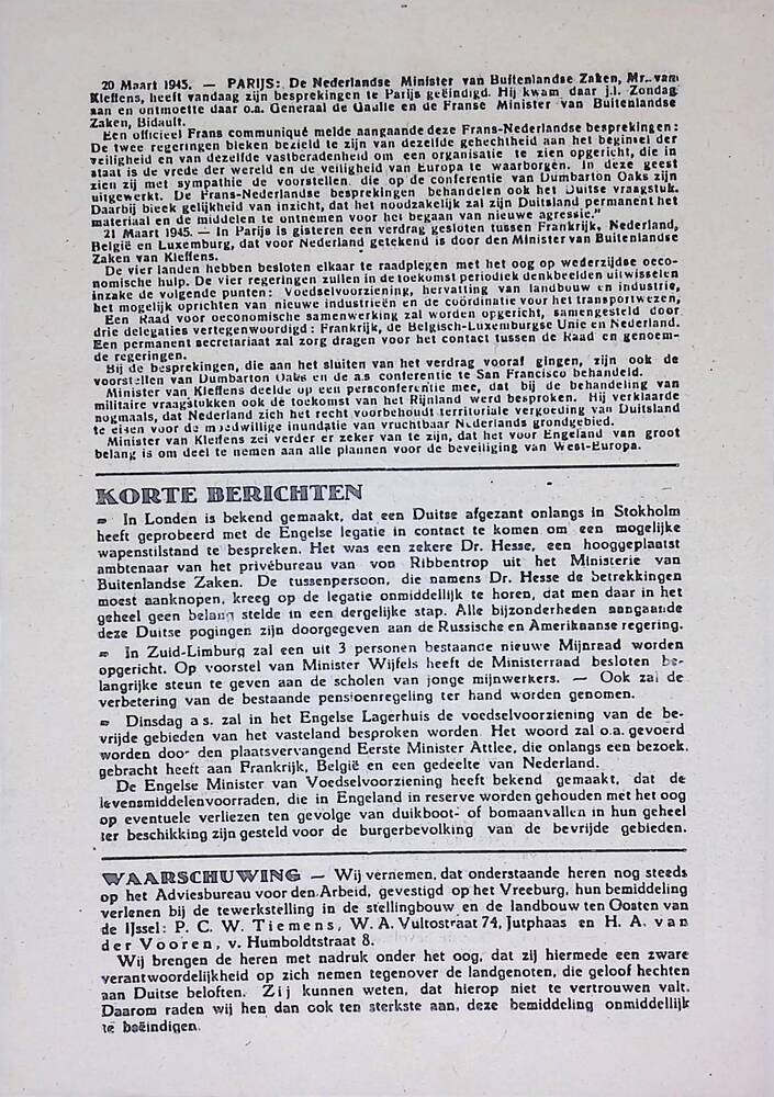 "Trouw 13 april 1945 no 67