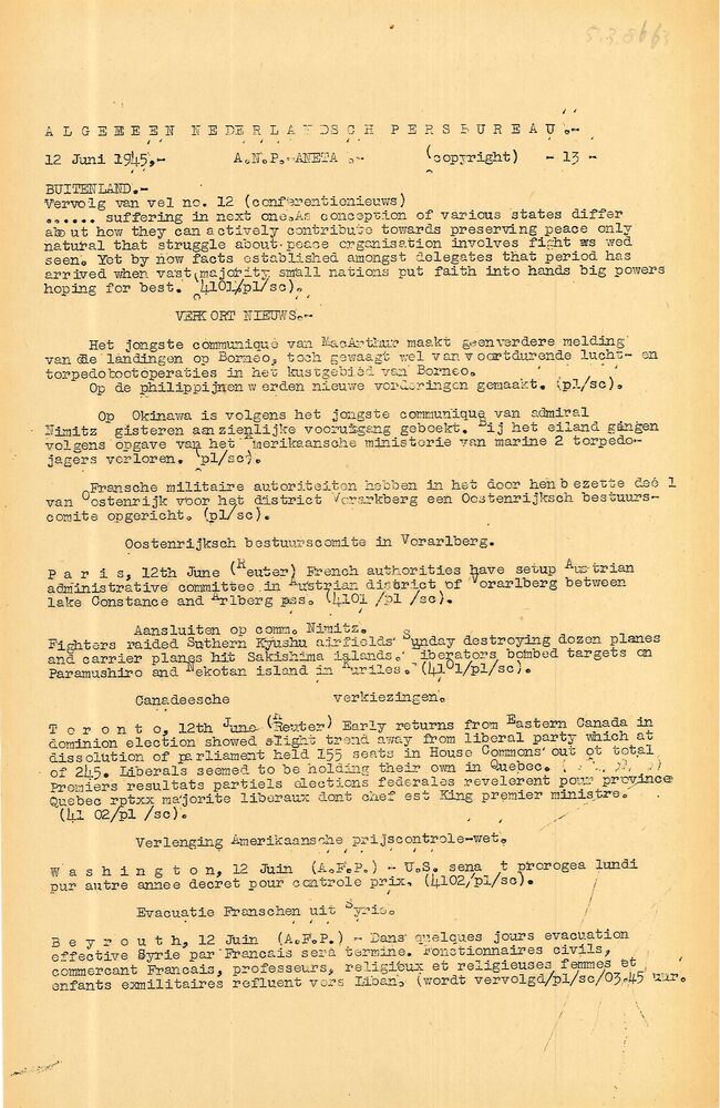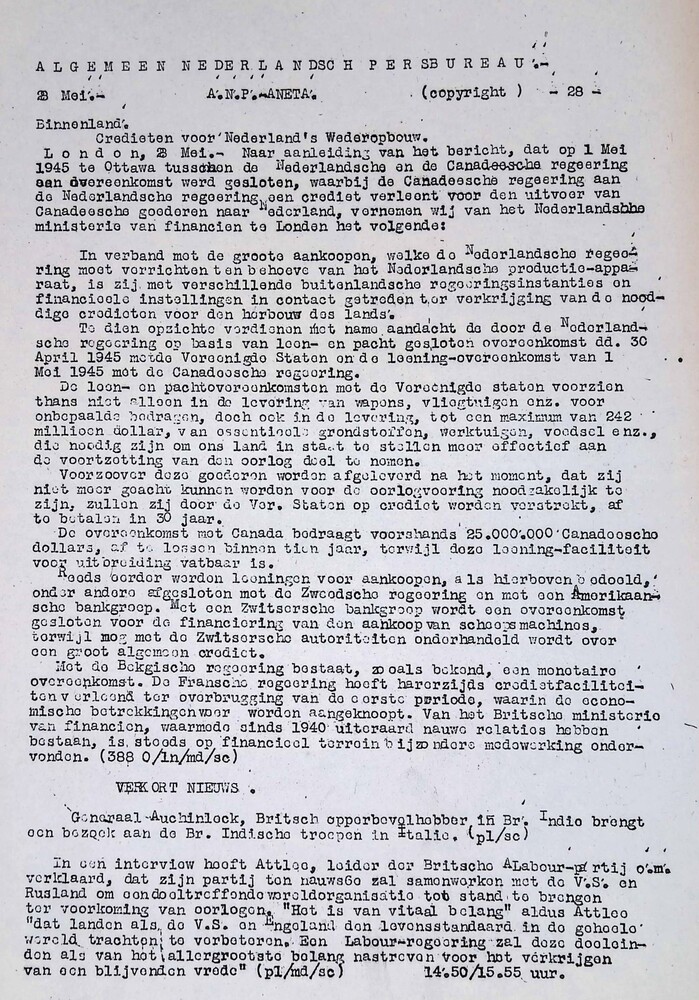 Algemeen Nederlandsch Persbureau, mededelingen, 28 m...