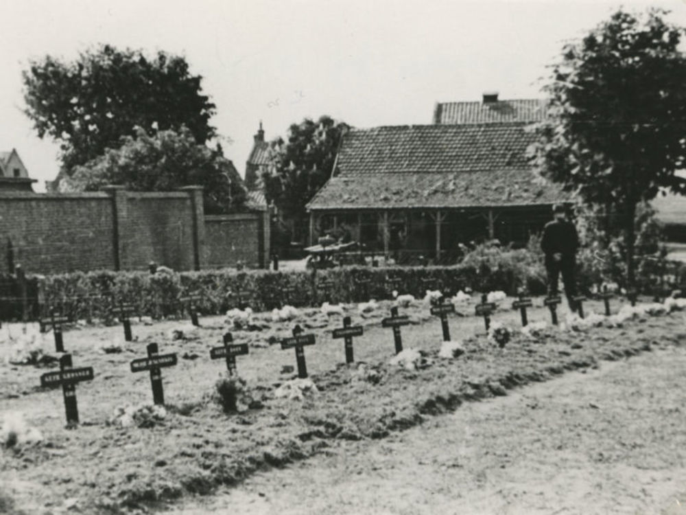 Foto Duitse begraafplaats. Tekst achterop; "Mei 1940...