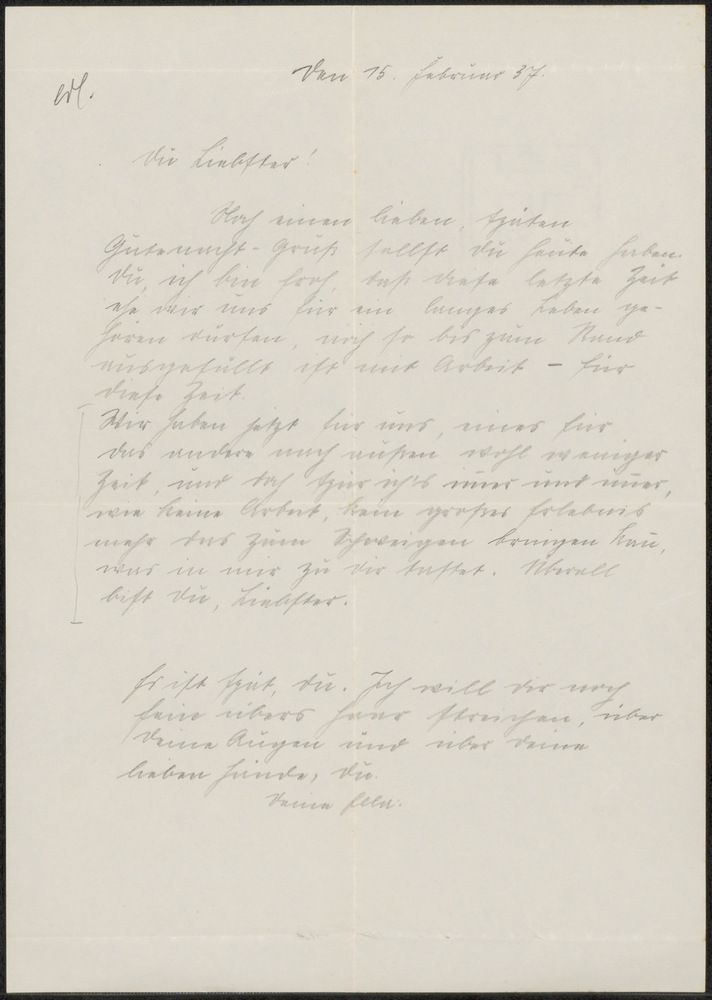 Brief van Ella aan Hubert d.d.15-02-1937