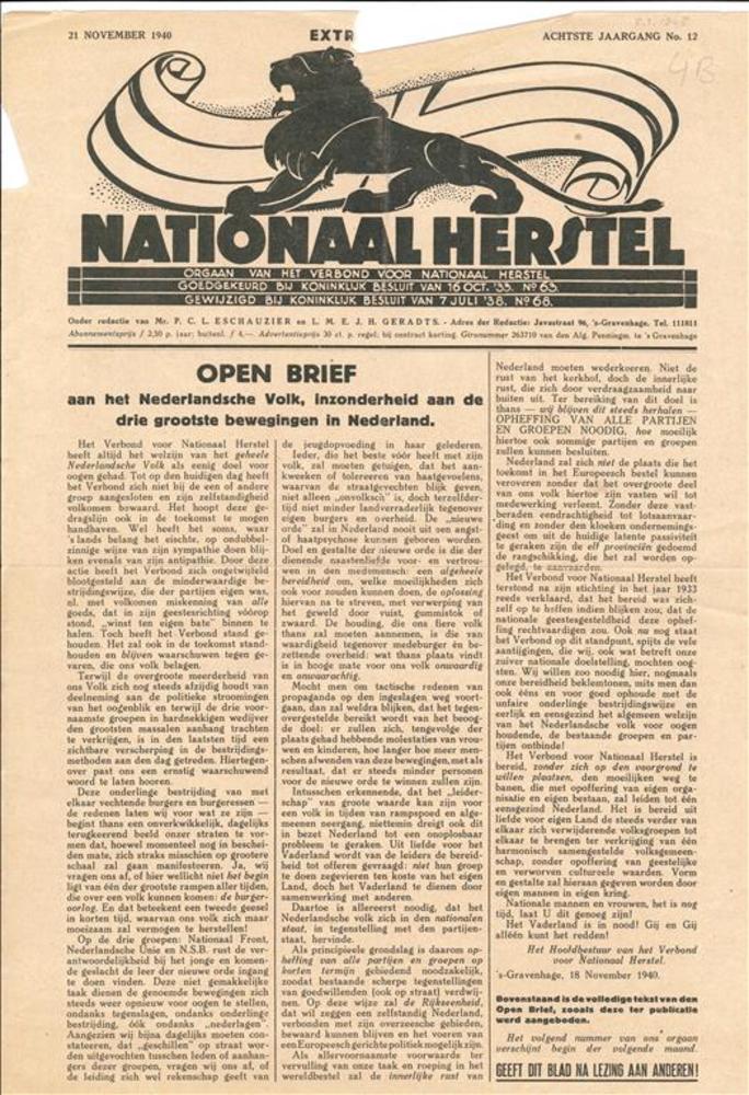 Nationaal Herstel, 21 november 1940.