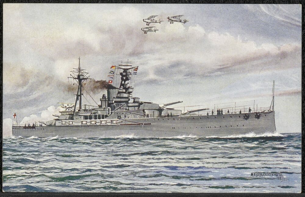 Briefkaart met tekening van H.M.S. Royal Oak