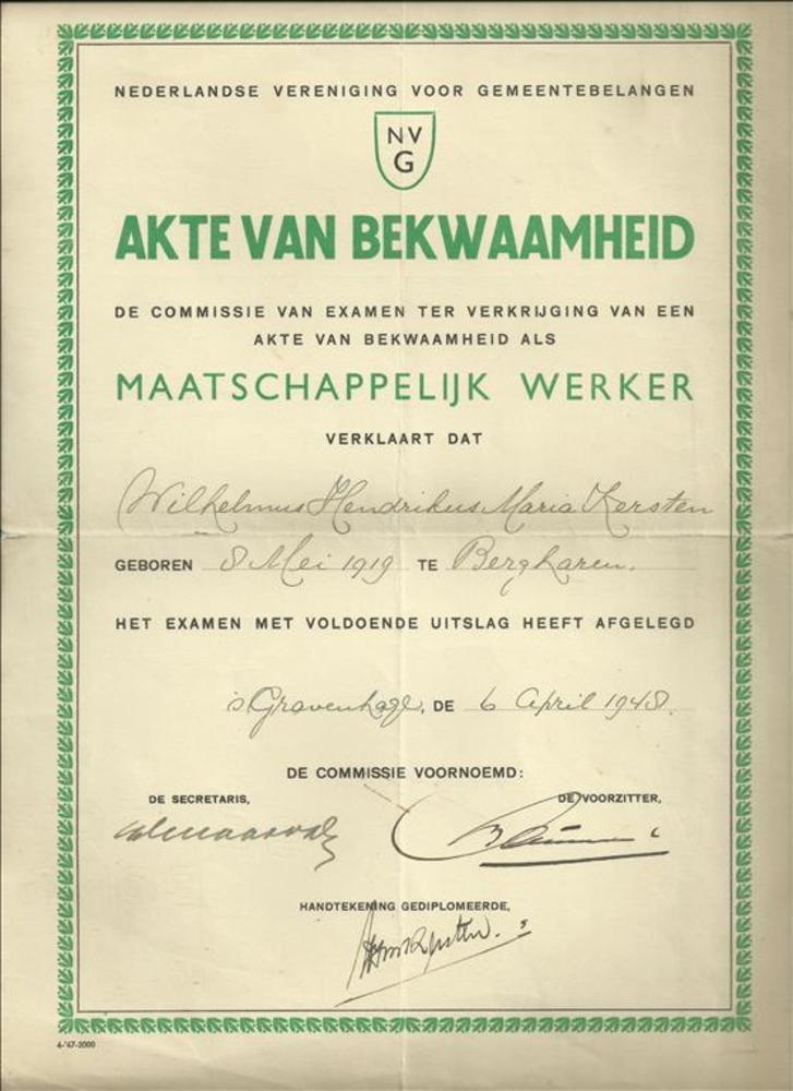 Akte van Bekwaamheid, Maatschappelijk Werker van W.H...