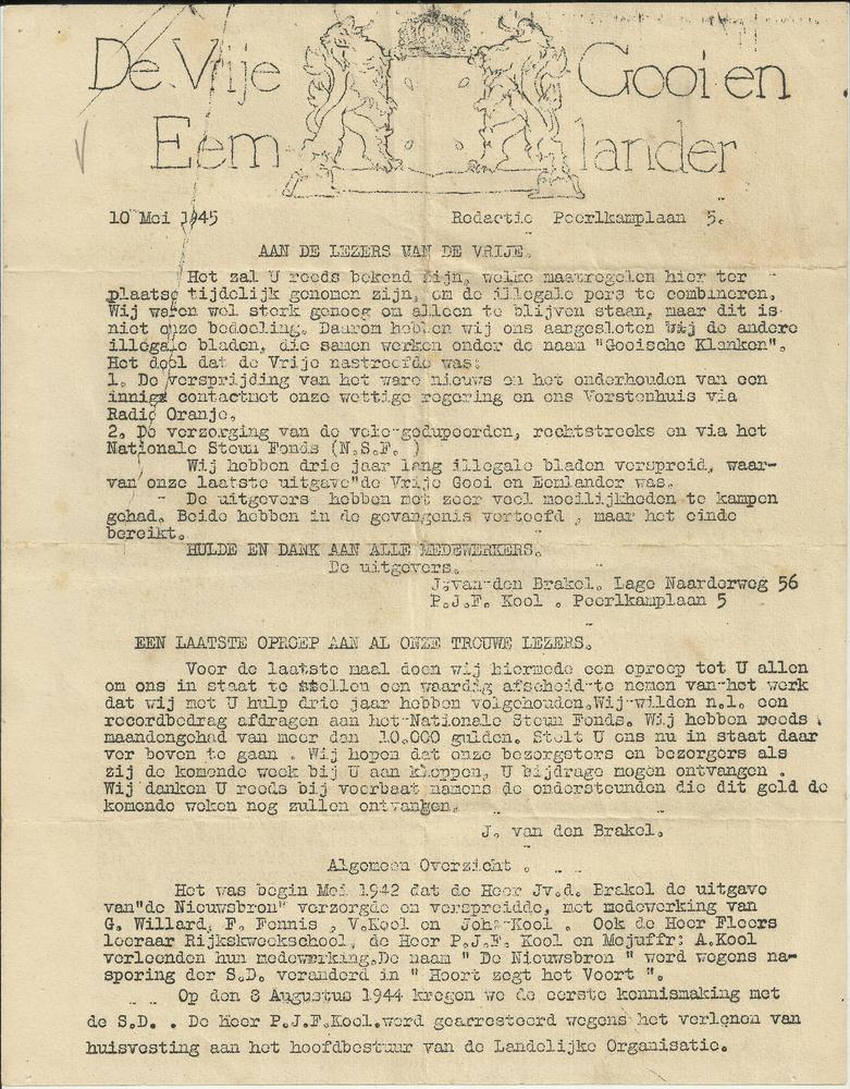 De Vrije Gooi en Eemlander 10 mei 1945