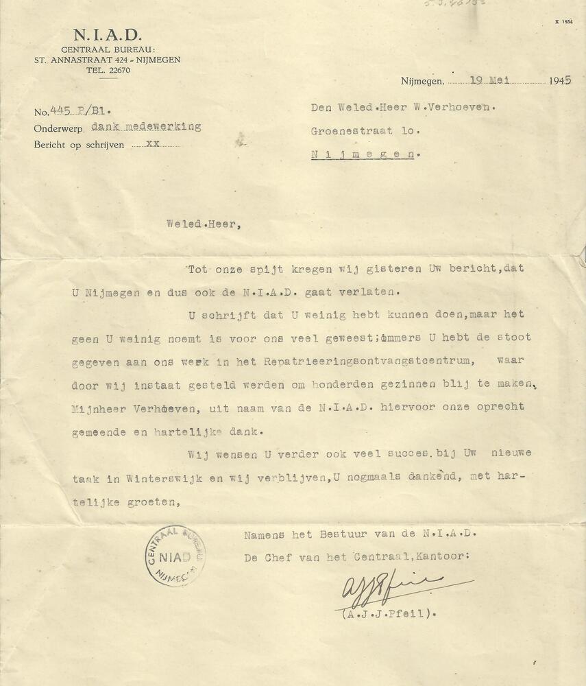 N.I.A.D. Nijmegen. Den Heer W. Verhoeven.