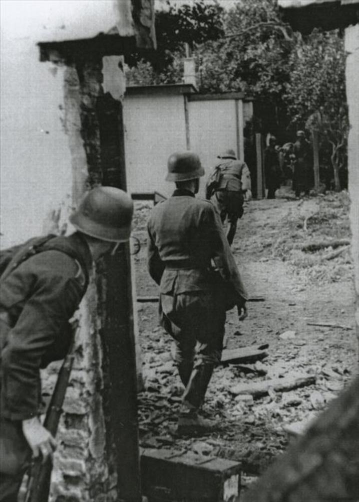 Mook, 20 september 1944, Duitse militaire in ruïne v...