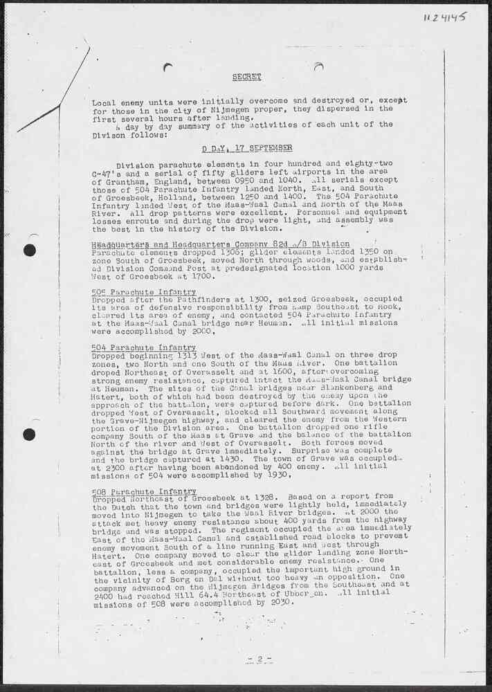 82nd Airborne Diviison, Operation Market-Garden, his...