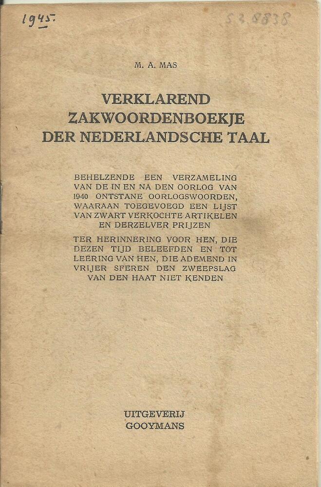 M.A. Mas, Verklarend zakwoordenboekje der Nederlands...