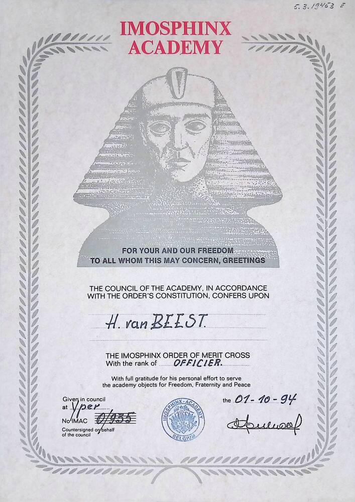 Certificaat uitgereikt door Imosphinx Academy, Belgium
