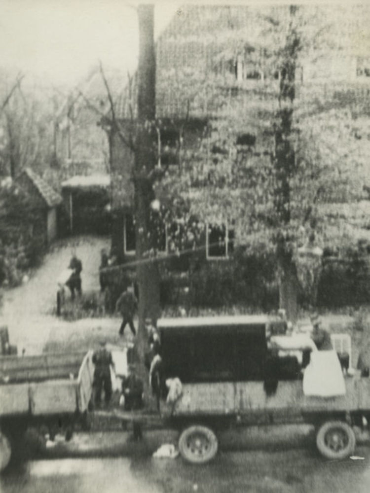 Nederlandse mannen worden tijdens een razzia uit hun...
