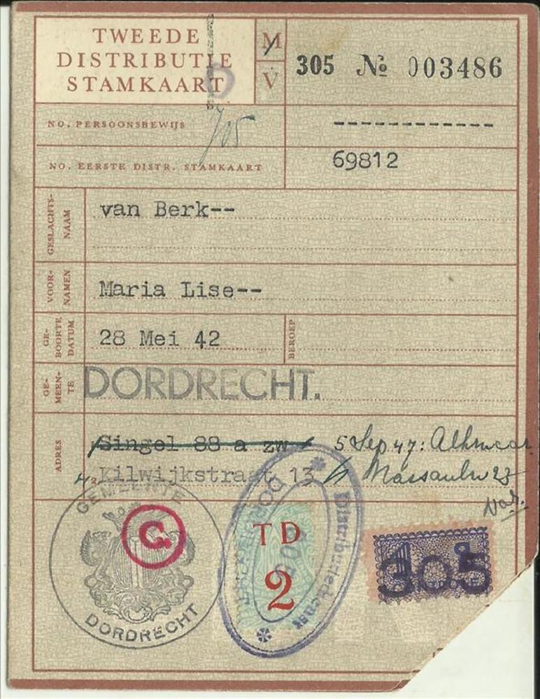 Tweede Distributiestamkaart van : Van Berk, Maria Lise