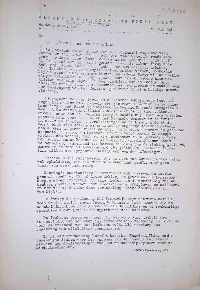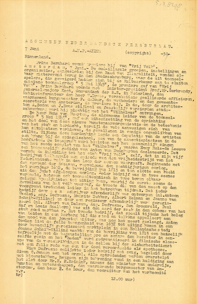 Algemeen Nederlandsch Persbureau, mededelingen, kant...