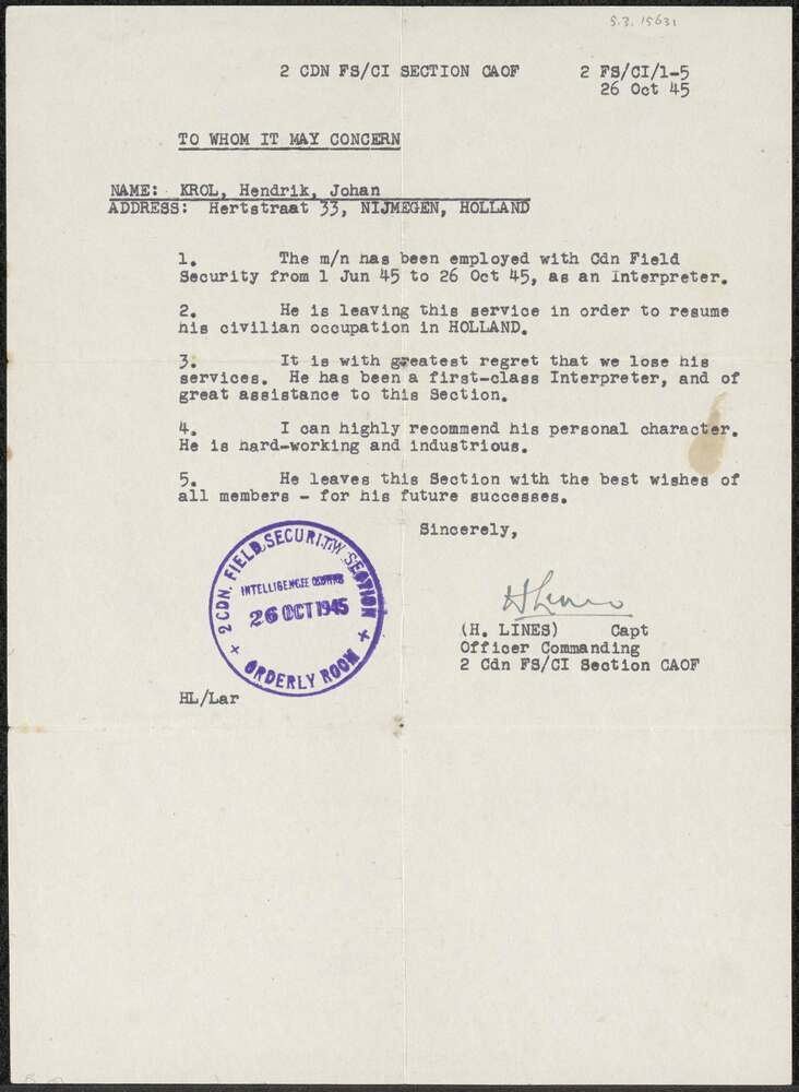 Verklaring van Capt. H. Lines, officer commanding 2 ...