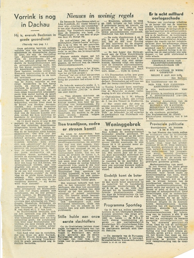 Het Vrije Volk, dinsdag 15 mei 1945, Eerste jaargang...