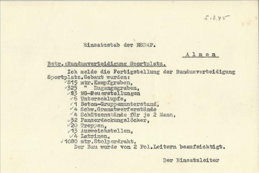 bericht : Einsatzstab der NSDAP, Almen 5 maart 1945