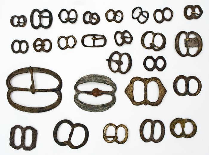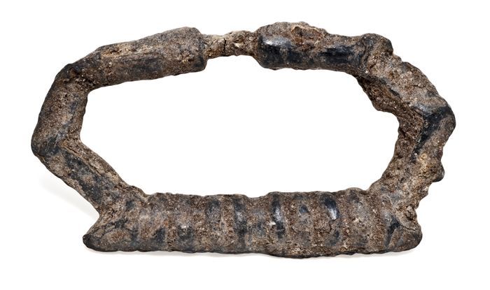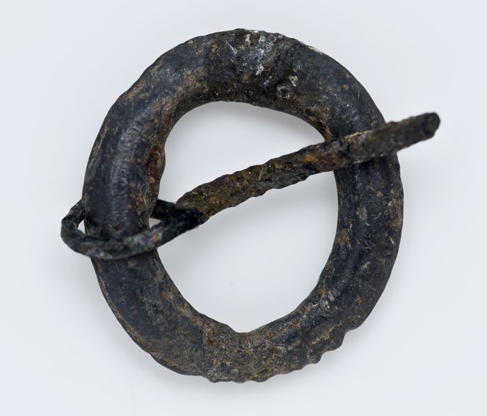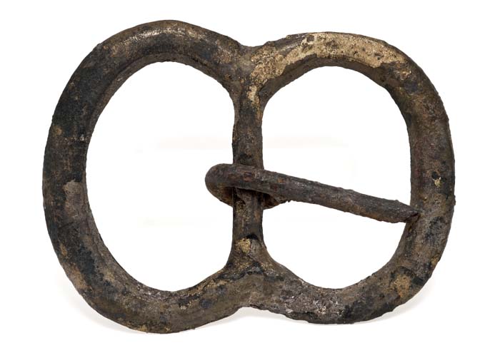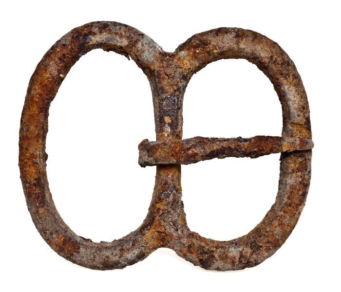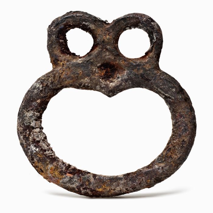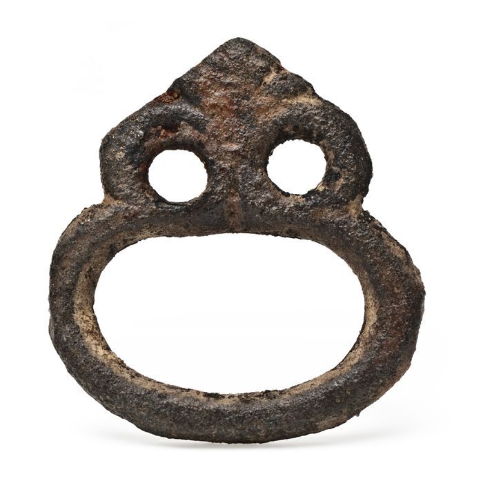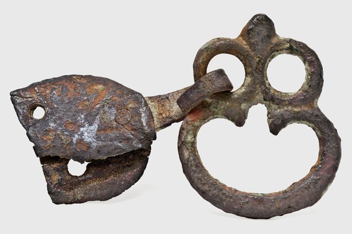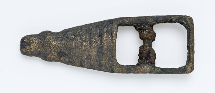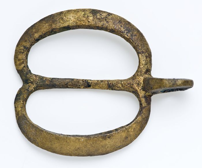 Koperen of bronzen sluiting van gordel met drie ogen...