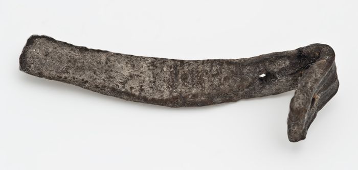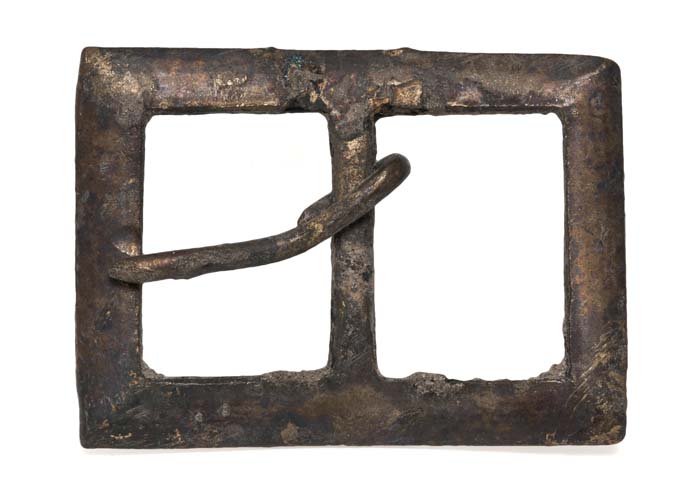 Kleine metalen gesp, rechthoekig en aan één zijde ve...