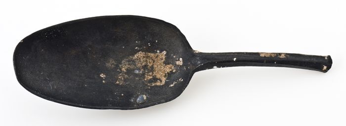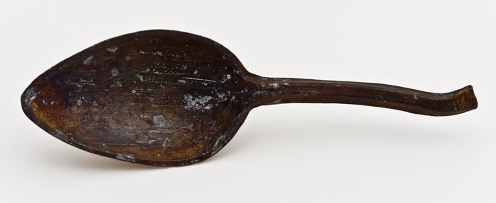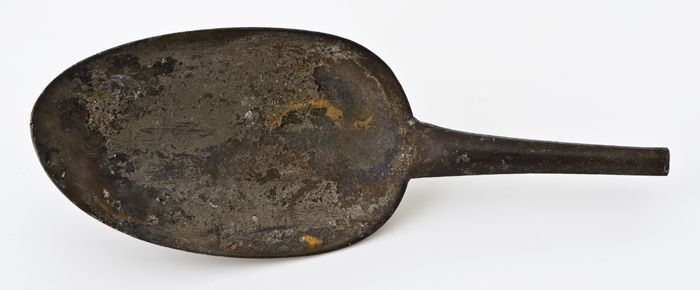 Lepel met spits toelopende, ovale bak en vierkantige...