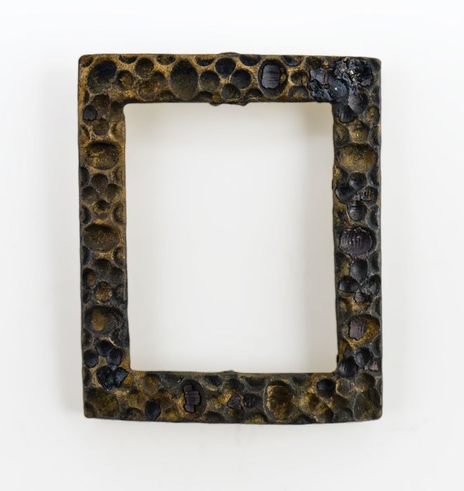 Kleine tinnen gesp zonder angel, versierde omlijsting