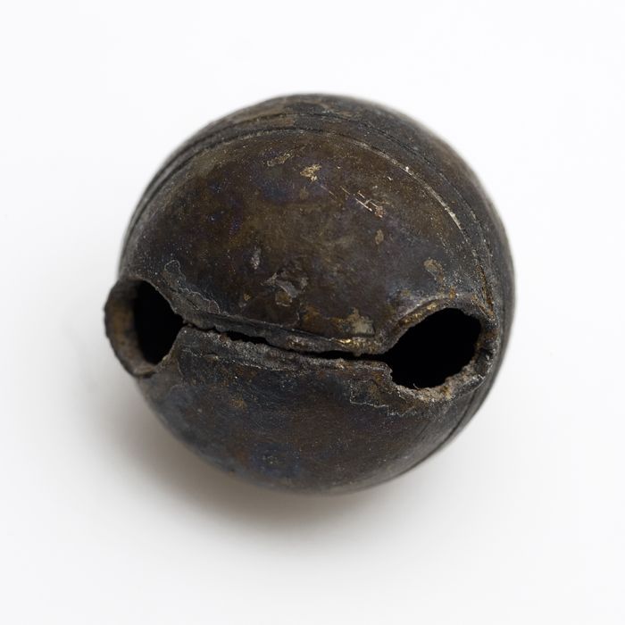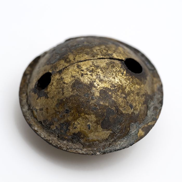 Koperen bel van muziekinstrument of paardentuig, gem...