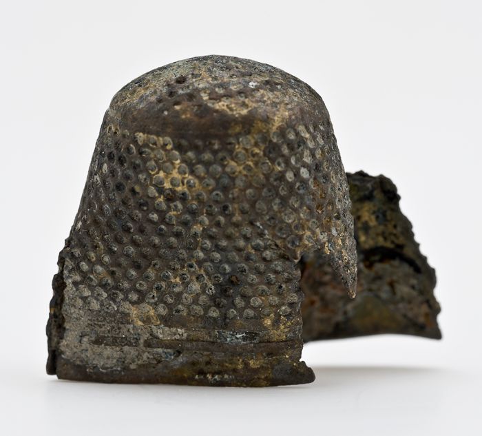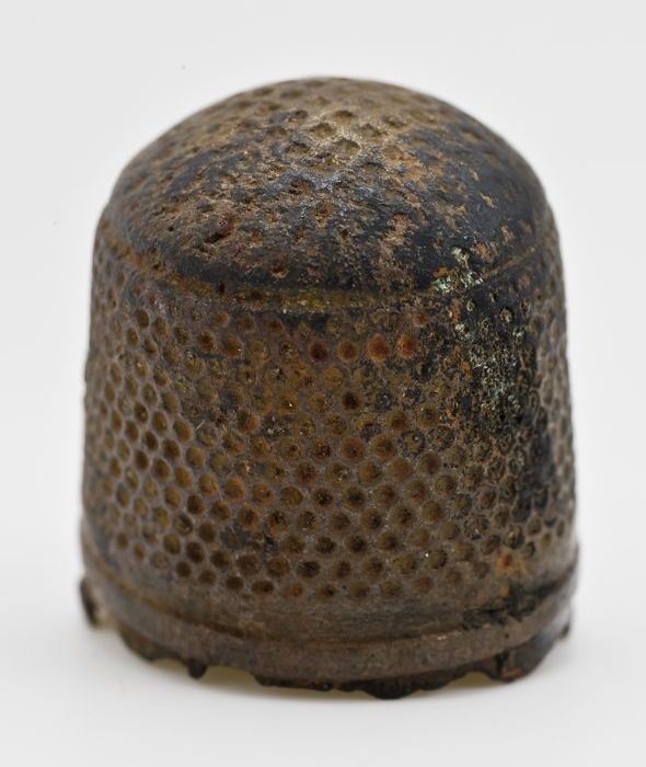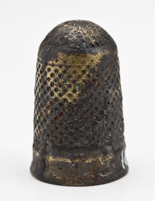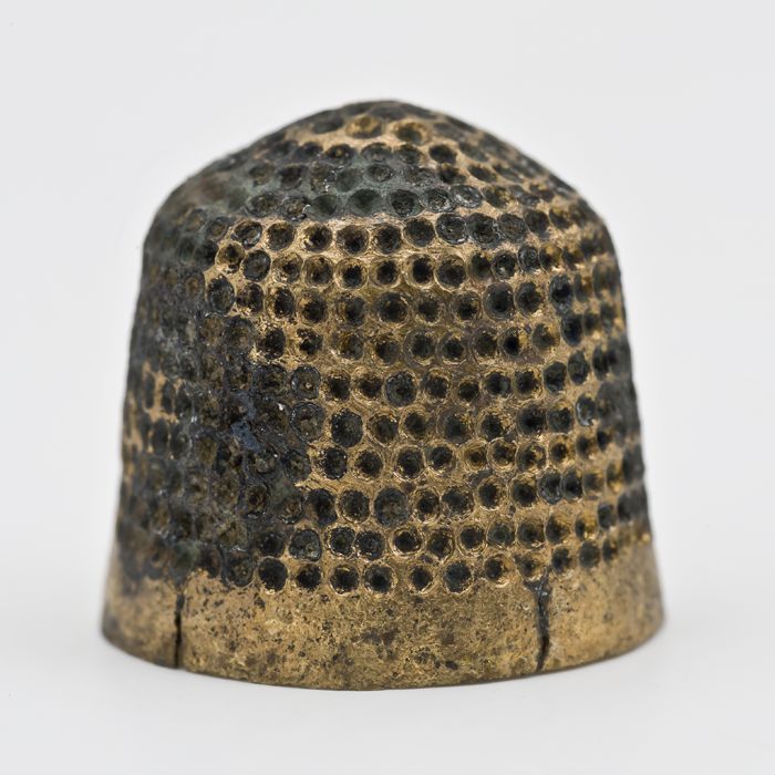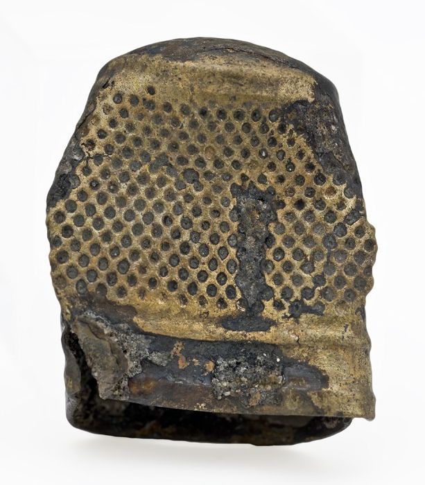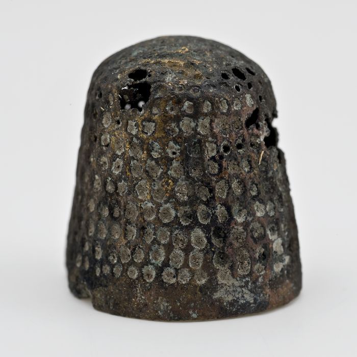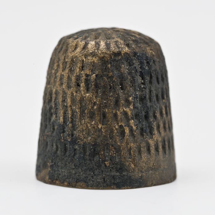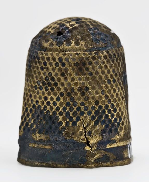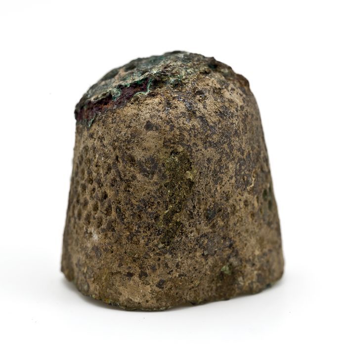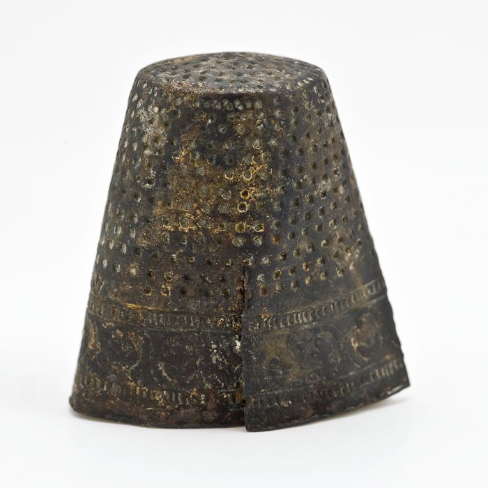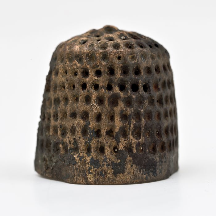 Koperen gegoten vingerhoed met linksdraaiende spiraal