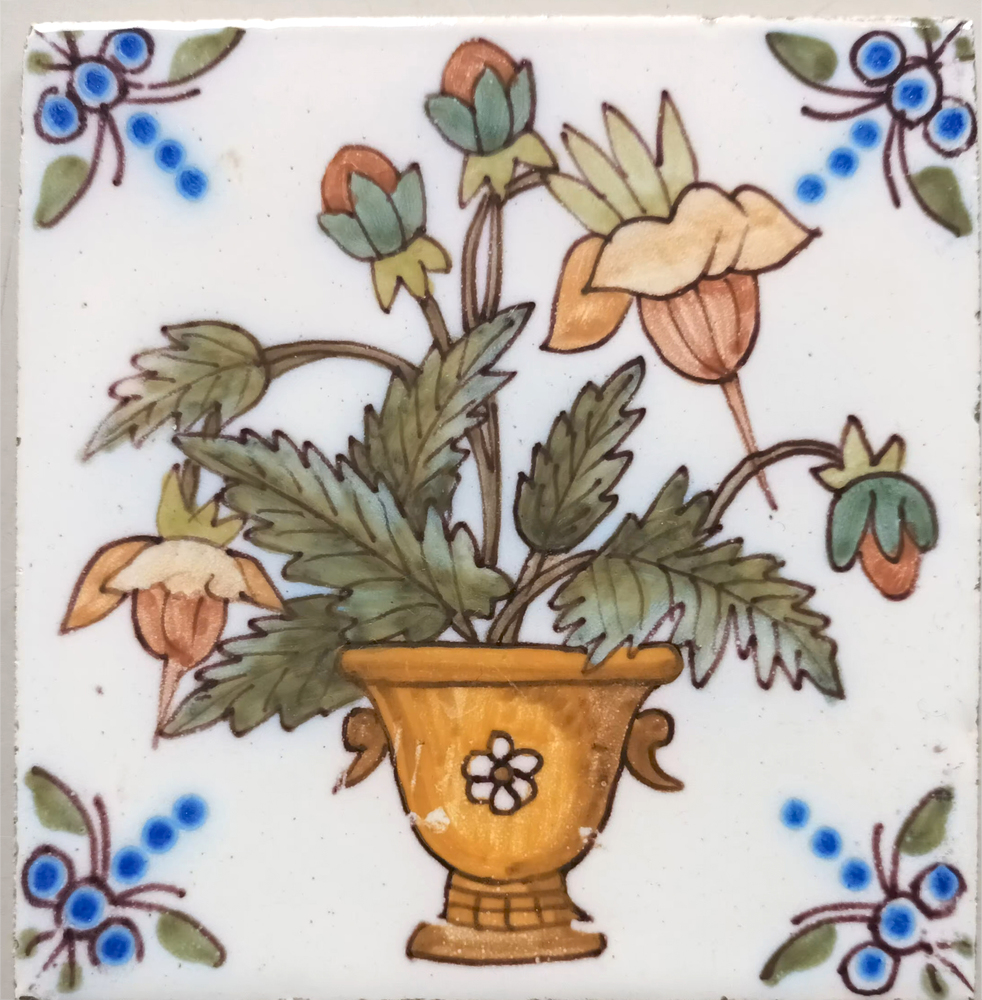 tegel van keramiek met tinglazuur, voorstellende: bl...