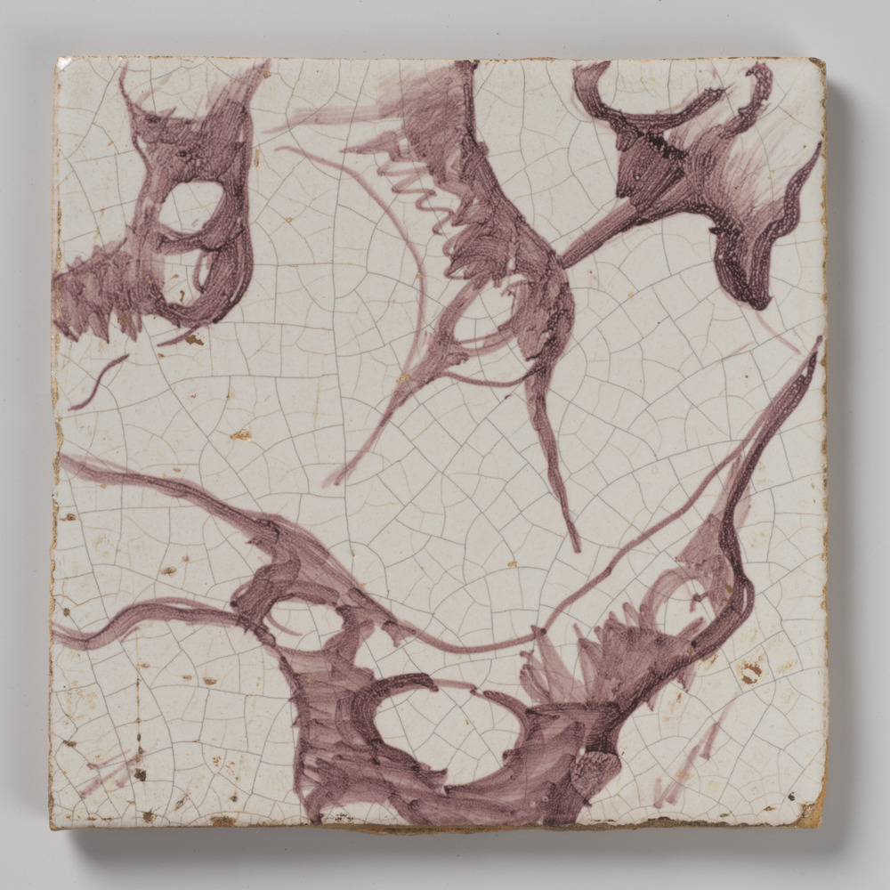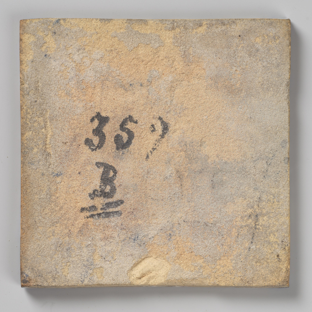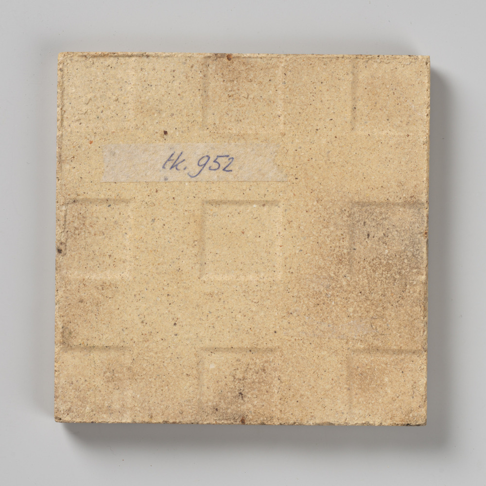 tegel van aardewerk, gesjabloneerd*, voorstellende: ...