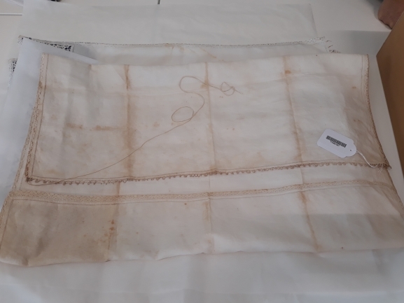 Pronklaken van linnen met naaldkant tussenzetsels, a...