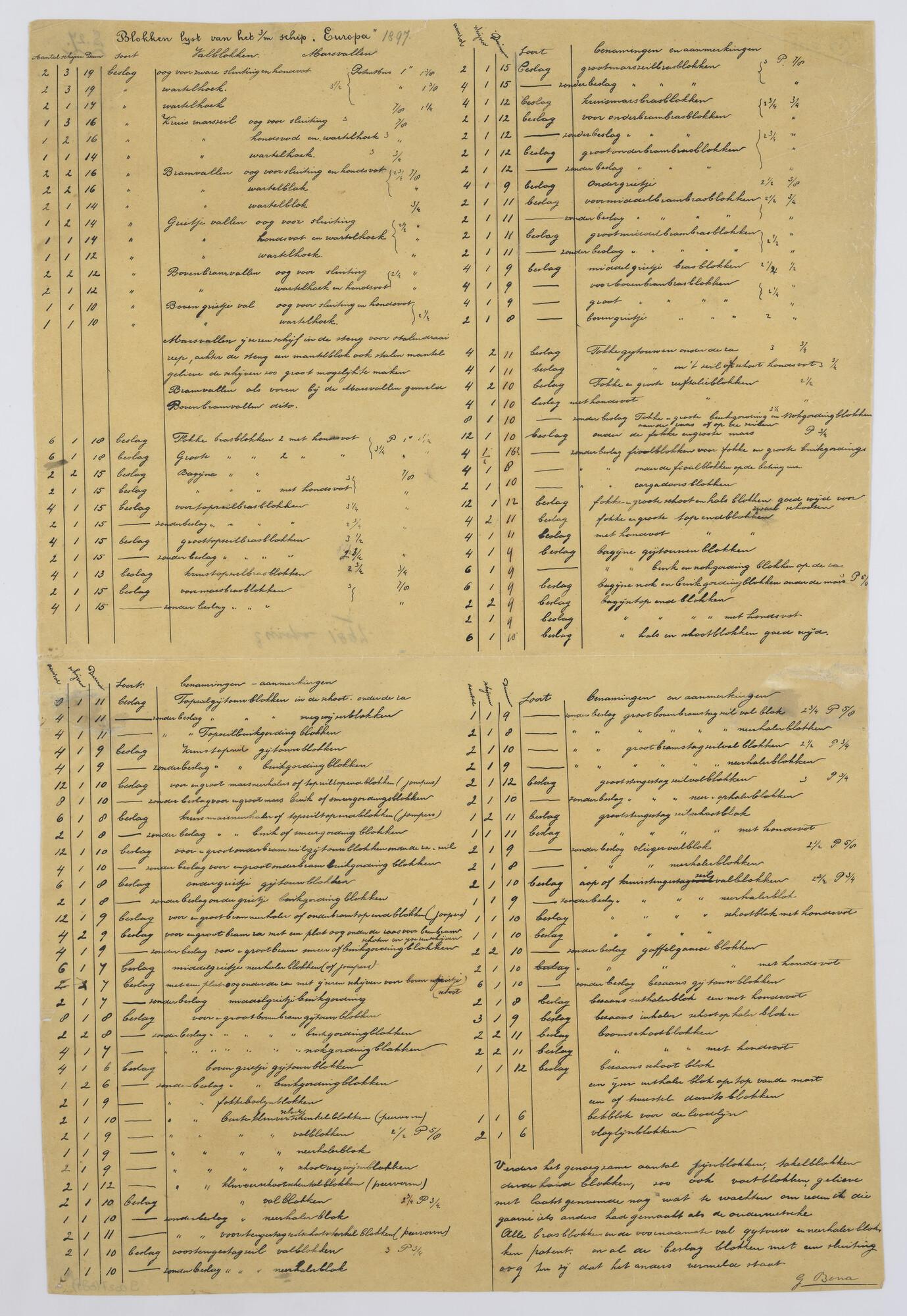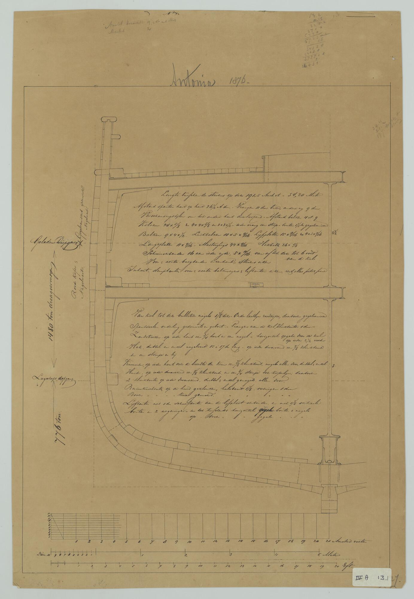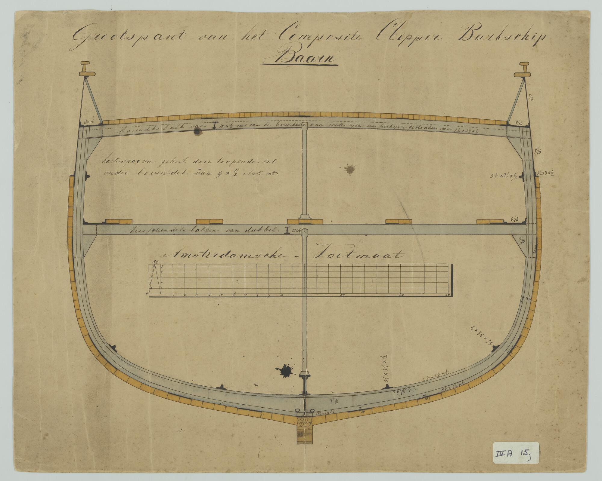 Grootspant van het barkschip 'Antonia' en plattegron...
