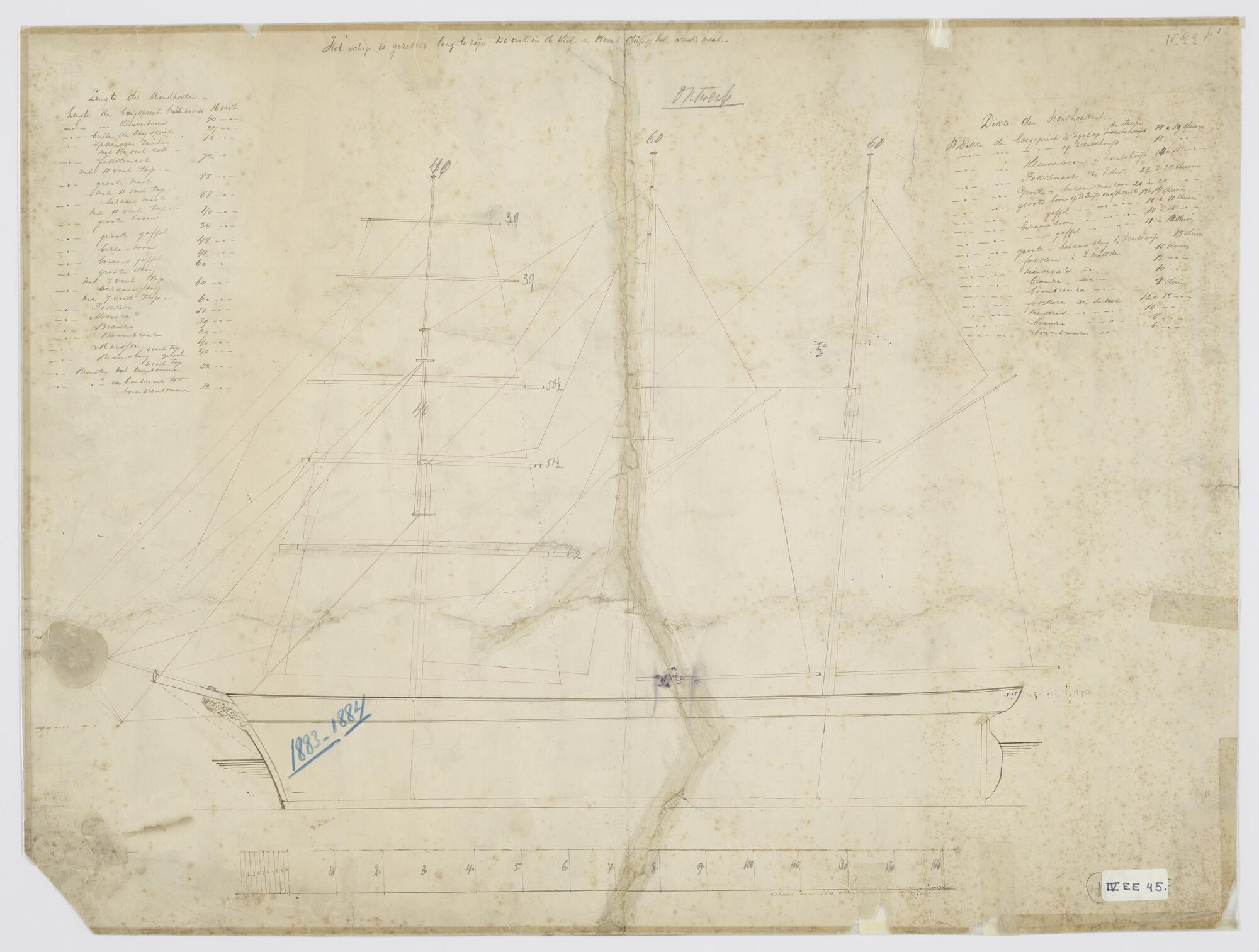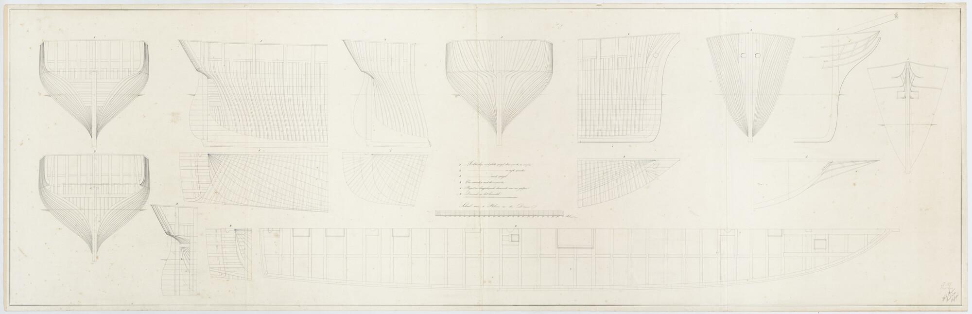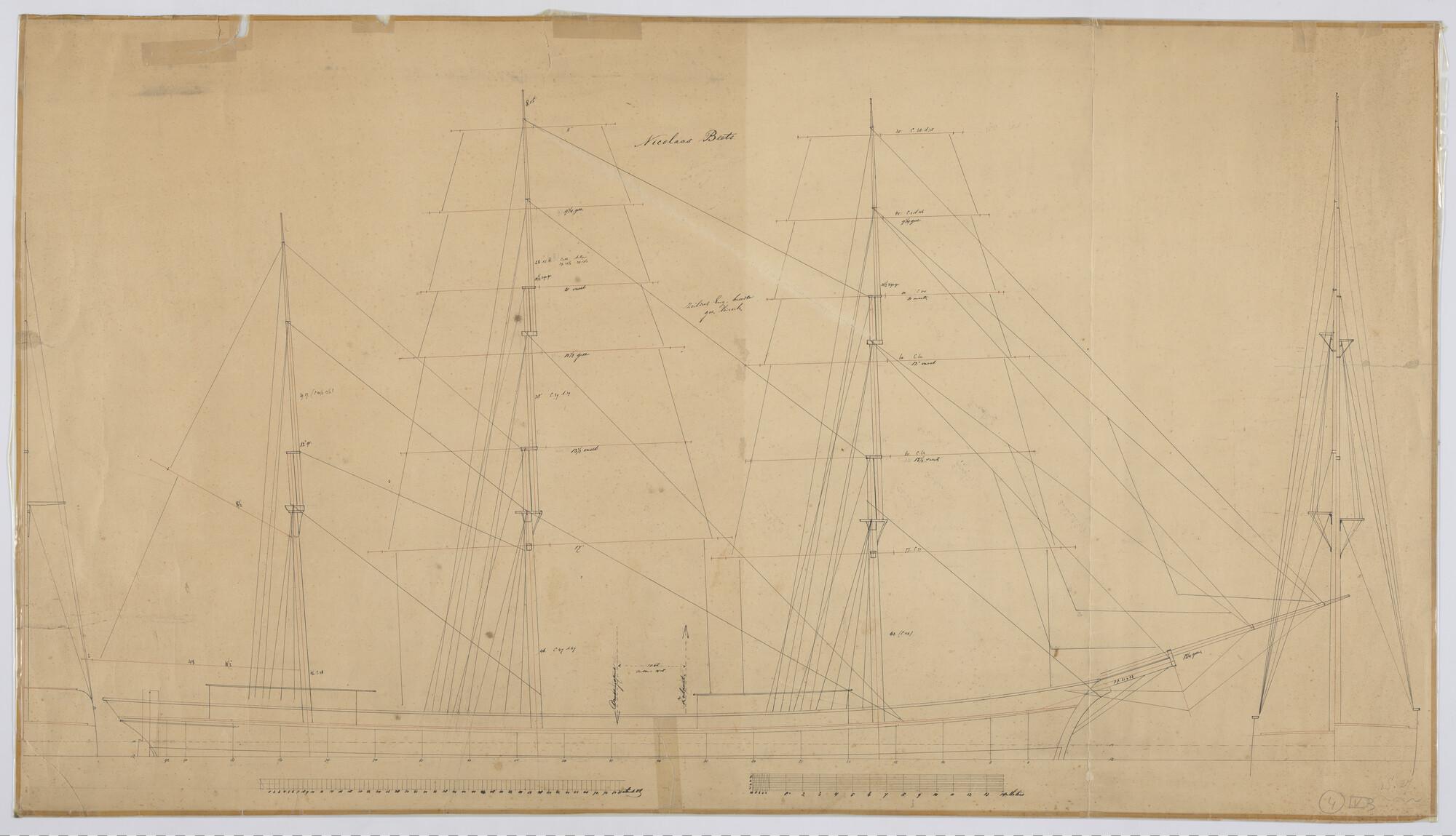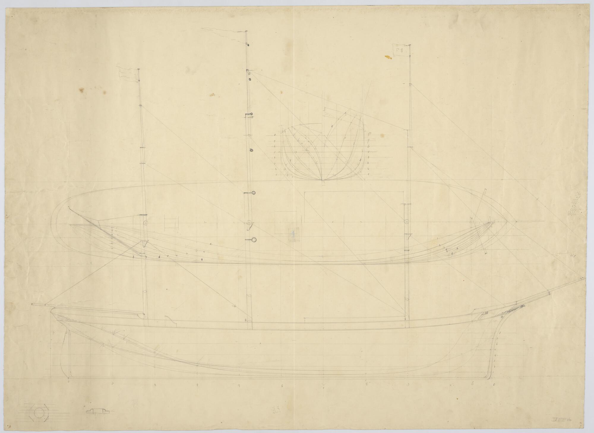 Lijnenplan van het barkschip 'Nicolaas Beets'