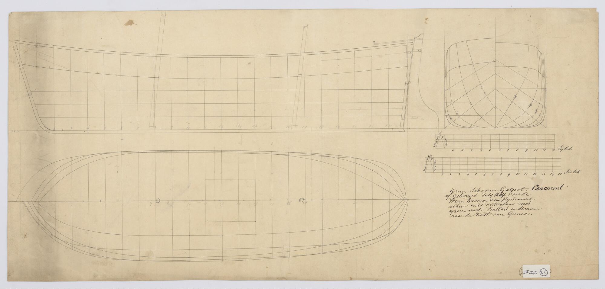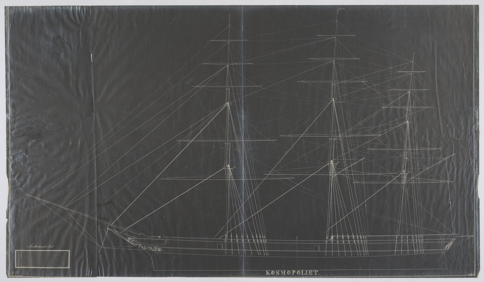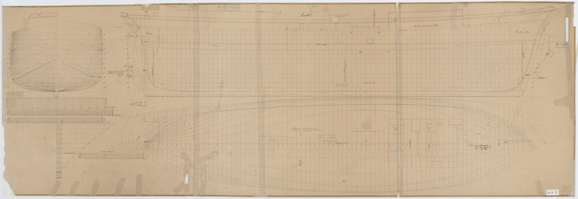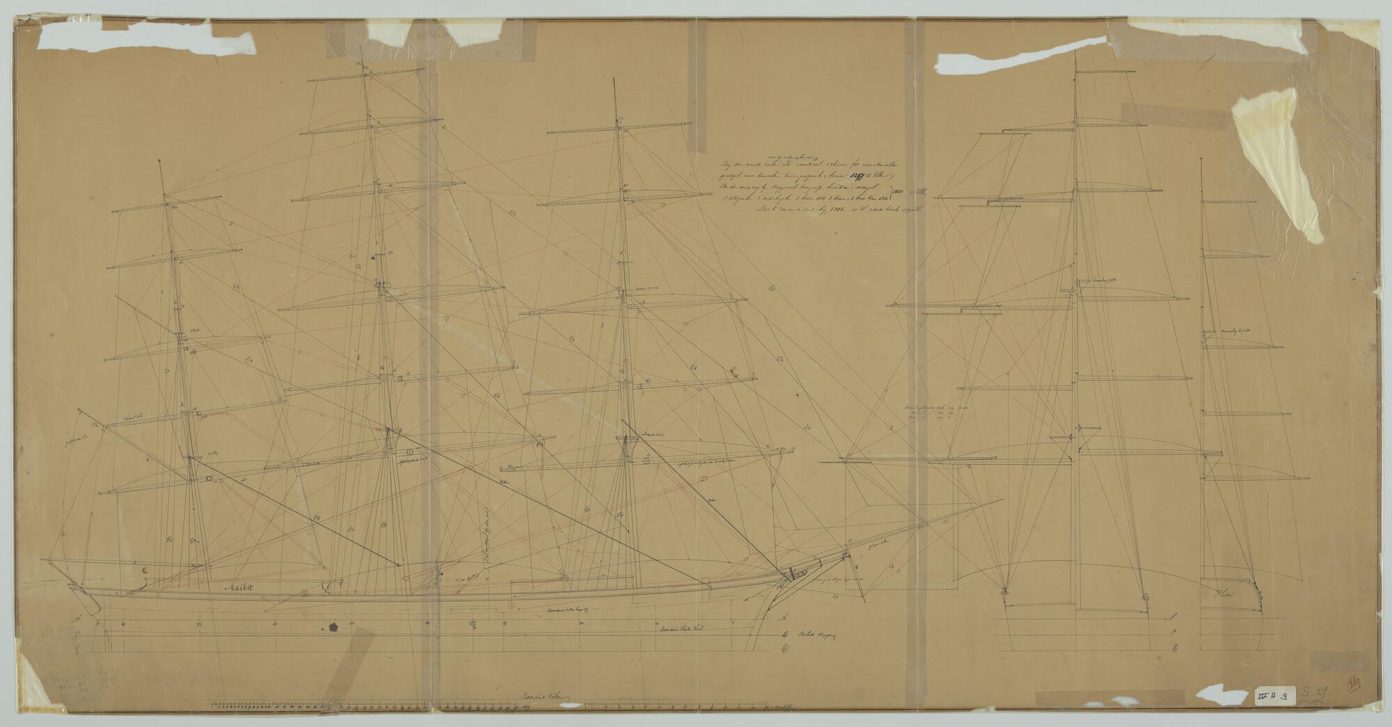 Lijnenplan van het barkschip 'Nicolaas Beets'